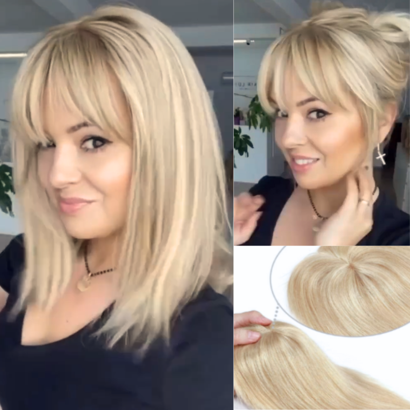 【🔥🔥】Natural & Soft Hair丨 Straight Hair Topper with Bangs丨 Beautiful Hair Toppers for Women Add Fuller Hair Instantly | Perfect for any style